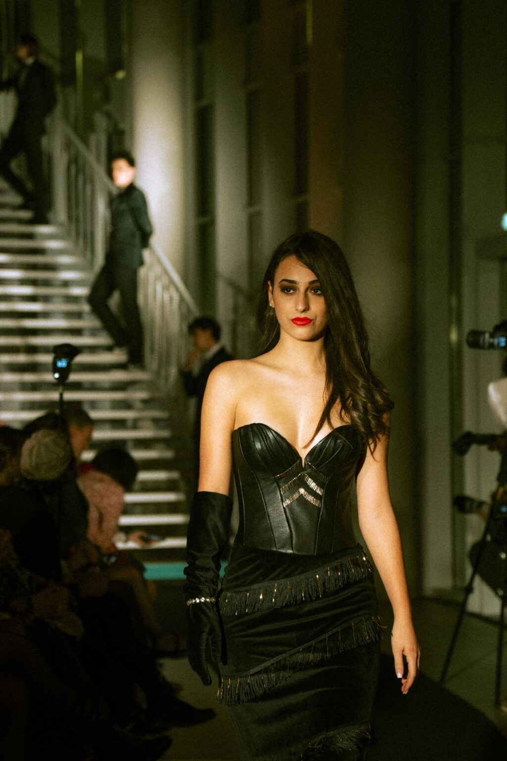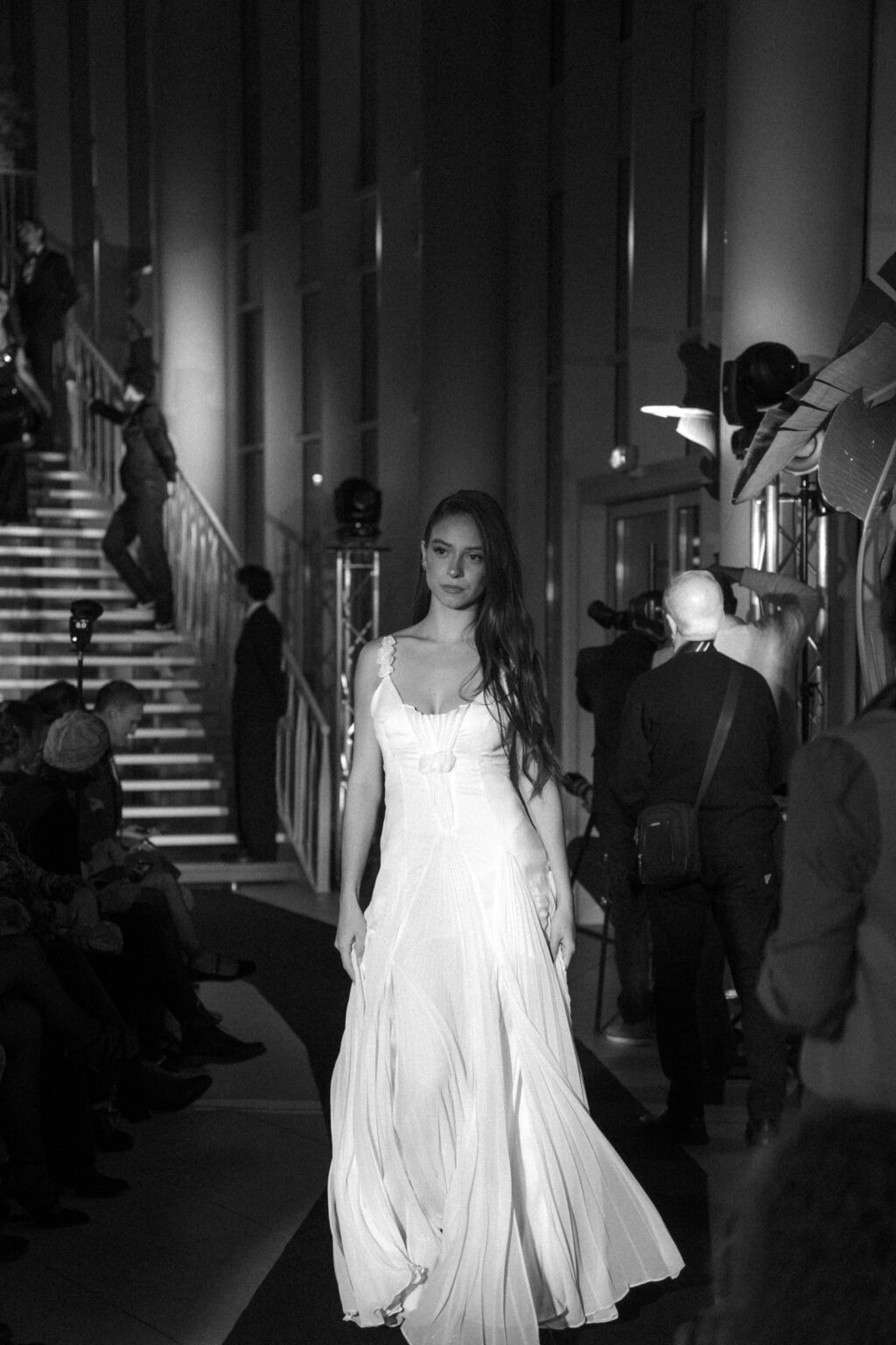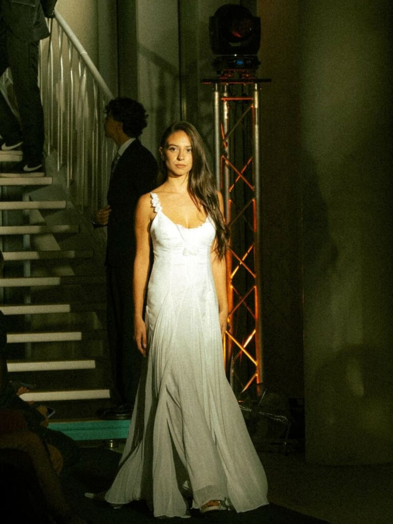 3 pièces Gatsby Glam’upcycling pour la FWOC : une robe de mariée, une tenue corset & sirène, et une robe satin nude.